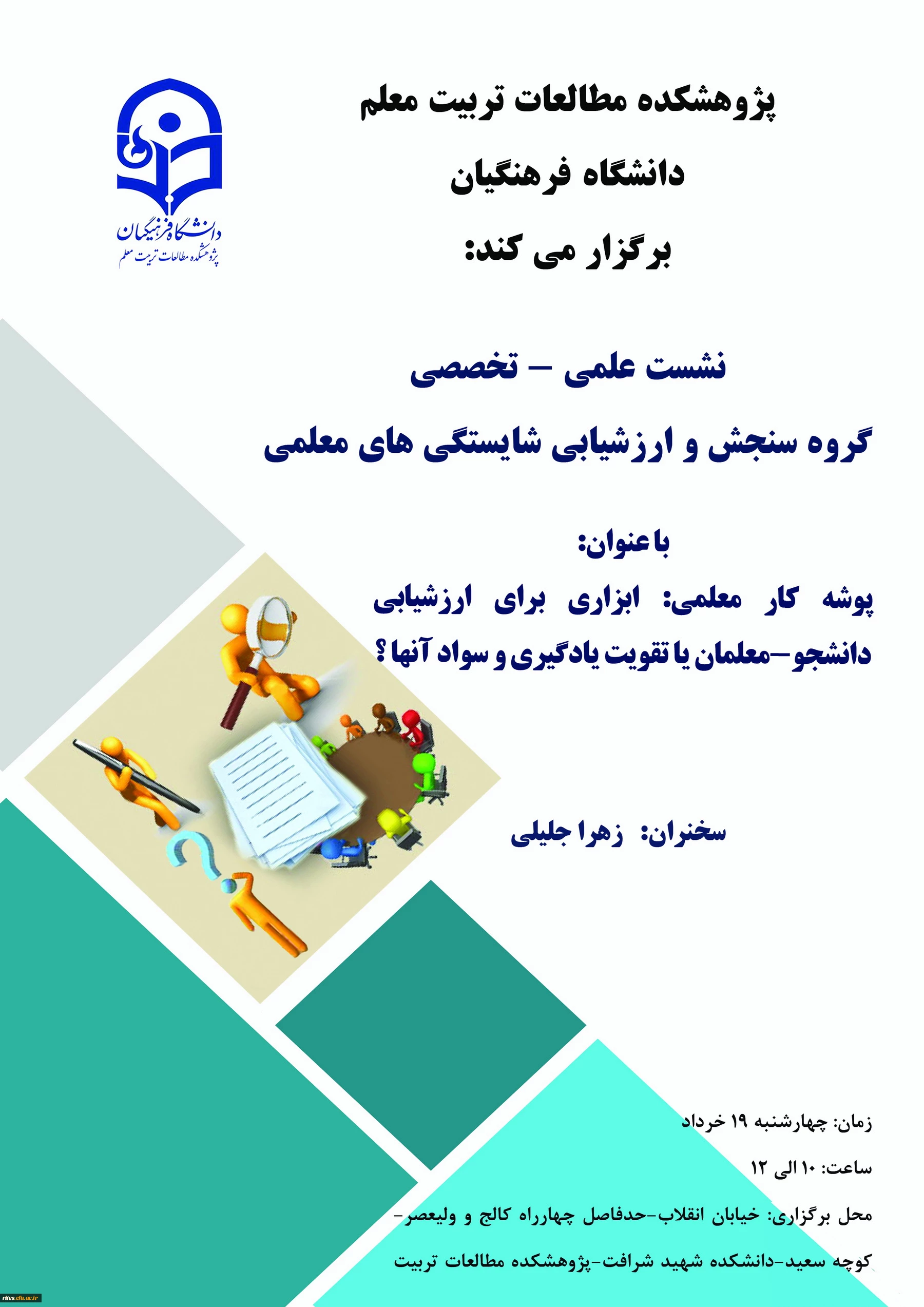 امتیاز دهید : نشست علمی - تخصصی گروه سنجش و ارزشیابی شایستگی های معلمی یکشنبه 16 خرداد 1395 ساعت 8:30